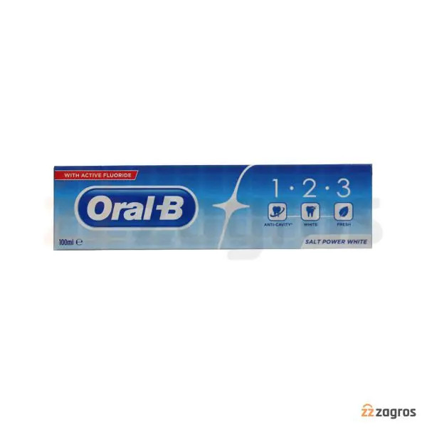 خمیر دندان 1.2.3 اورال بی مدل Salt Power White حجم 100 میل