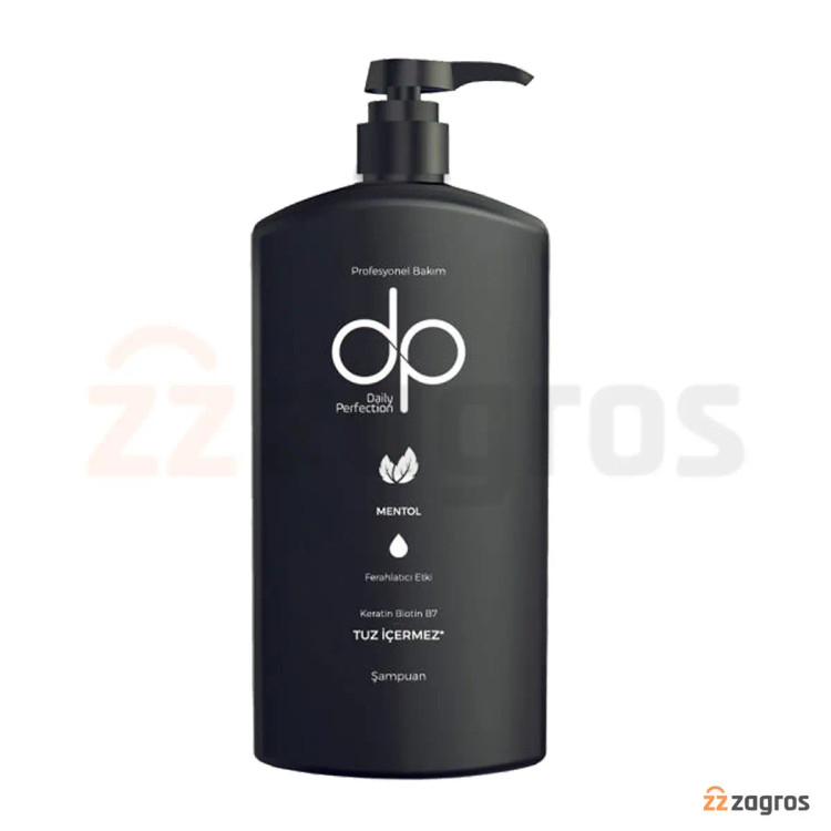 شامپو بدون نمک DP مشکی مدل Daily Perfection با فرمولاسیون حاوی کراتین، بیوتین و ویتامین B7 موهای شما را به صورت حرفه ای و روزانه براق، سالم و درخشان خواهد نمود. با دارا بودن میزان قابل توجهی عصاره ی نعناع، طراوت و تازگی بی اندازه ای به ارمغان خواهد آورد.